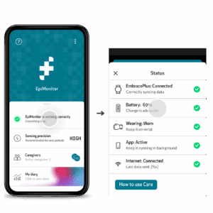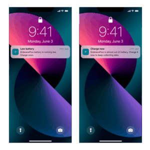 4. The device is fully charged when the display shows ‘100’. Hold the charger and slide the EmbracePlus off the magnetic base to remove it.