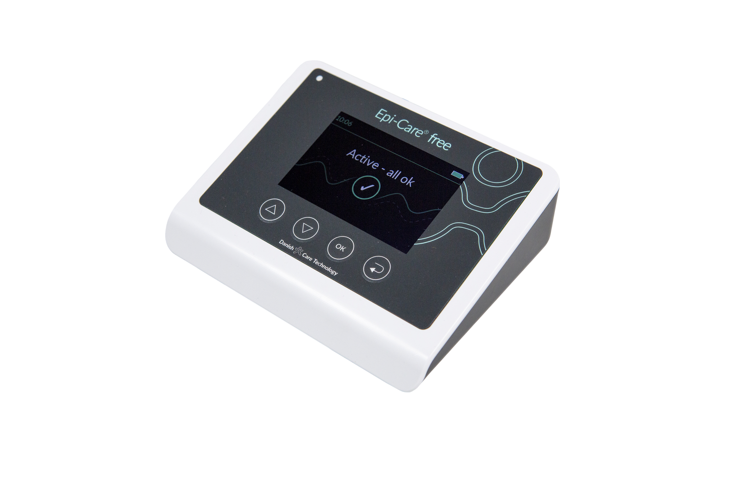 The control unit is dependent on a power supply. In case of a power supply, the Epi-Care free control unit will continue for some seconds by means of an integrated backup battery, and will go into alarm mode before being shut down. An alarm will also be triggered in the external call system.